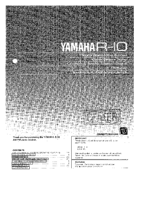 Yamaha R-10 - Owners Manual