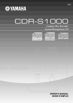 Yamaha CDRS-1000 - Owners Manual