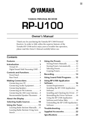 Yamaha RPU-100 - Owners Manual