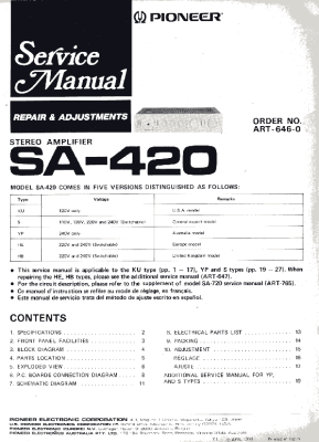 Pioneer-SA-420-Service-Manual