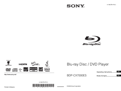 Sony BDP-CX7000ES - Owners Manual