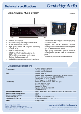 Cambridge Audio Minx Xi - Technical Specifications