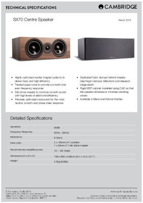 Cambridge Audio SX70 - Technical Specifications