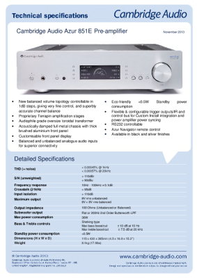 Cambridge Audio Azur 851E - Technical Specifications