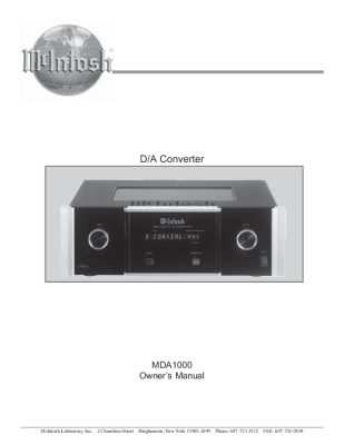 McIntosh MDA-1000 - Owners manual