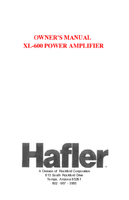 Hafler XL-600 - Owners Manual