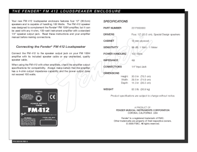 Fender FM-412-Loudspeaker-Enclosure - Owners Manual