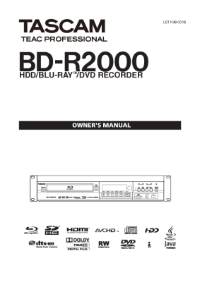 Tascam BD-R2000 - Owners Manual