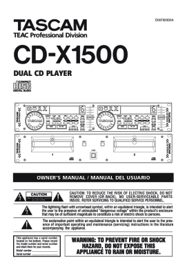 Tascam CD-X1500 - Owners Manual