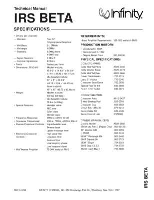 Infinity IRS-Beta-Specifications