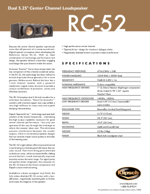 Klipsch RC-52 - Brochure