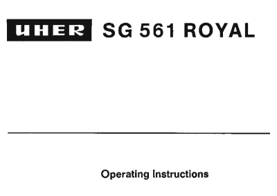 Uher SG-561-Royal - Owners Manual