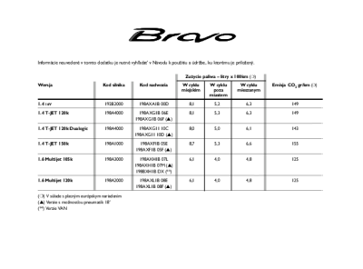Fiat Bravo - Manual SK 2009- Spotreba paliva-Emisie C02 530.03.790 Bravo SK 1ed 07 2009