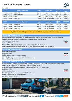 VW Touran - cennik 2022