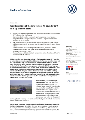 VW Tayron - 1st technical and media information 2024