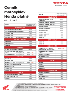2016_Honda - cennik