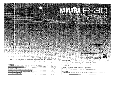 Yamaha R-30 - Owners Manual