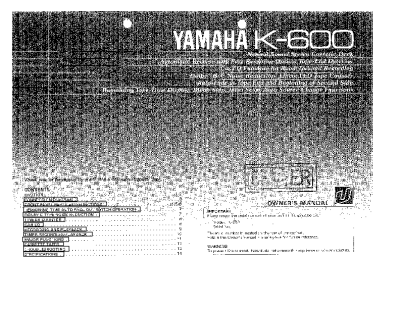 Yamaha K-600 - Owners Manual