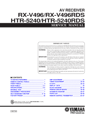 Yamaha RXV-496-RDS - Service Manual