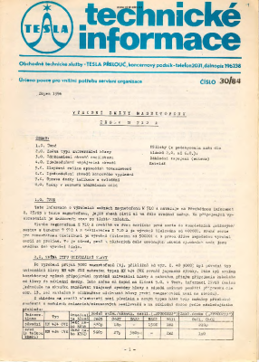 Tesla M710 - Navod k udrzbe 1984