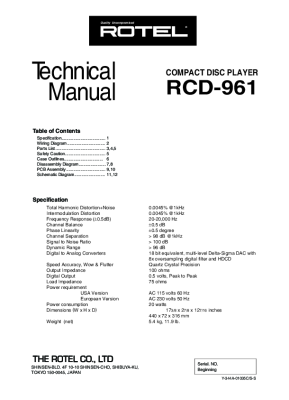 Rotel RCD-961 - Technical manual