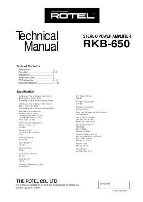Rotel RKB-650 - Technical manual