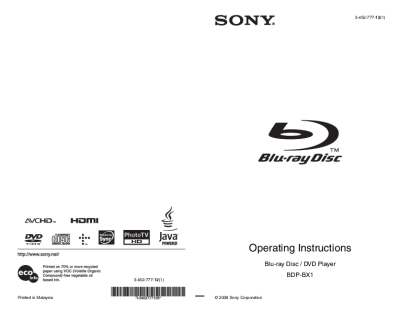 Sony BDP-BX1 - Owners Manual