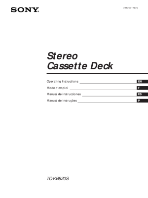 Sony TC-KB920S - Owners Manual