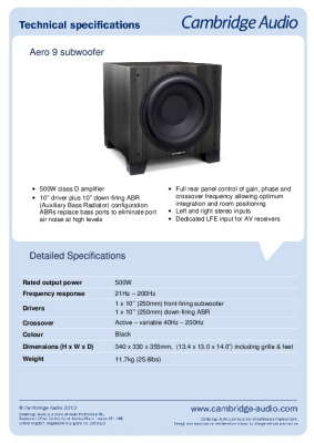 Cambridge Audio Aero 9 - Techical Specifications