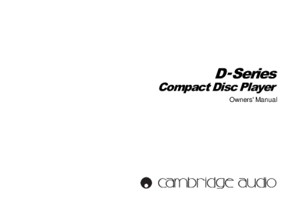 Cambridge Audio D-Series - Owners manual