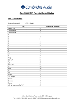 Cambridge Audio Azur 350A C IR Codes