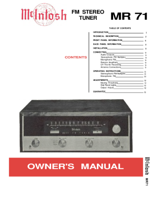 McIntosh MR-71 - Owners manual