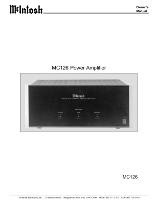 McIntosh MC-126 - Owners manual