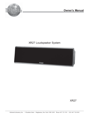 McIntosh XR-27 - Owners manual