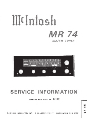 McIntosh MR-74 - Service manual