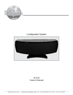 McIntosh XCS-1-K - Owners manual