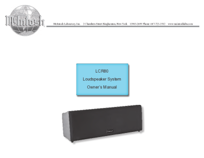 McIntosh LCR-80 - Owners manual