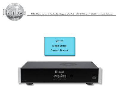 McIntosh MB-100 - Owners manual