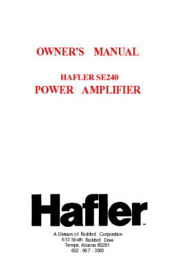 Hafler SE-240 - Owners Manual