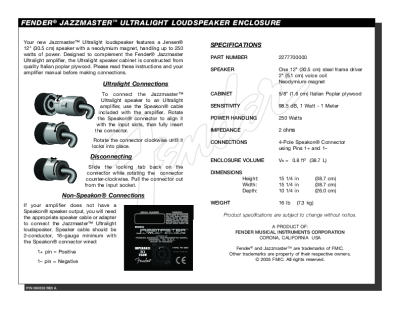 Fender Jazzmaster-UltraLight-Loudspeaker-Enclosure-Manual