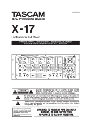 Tascam X-17 - Owners Manual