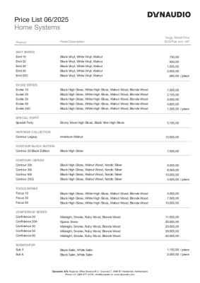 Dynaudio - Price List 2025