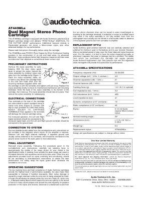 Audio Technica AT-440-MLA - Owners Manual