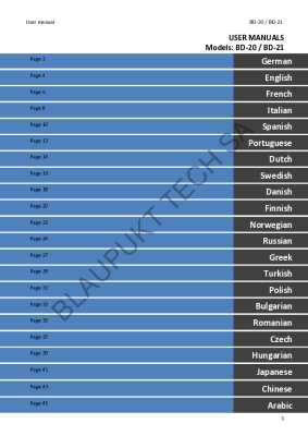 Blaupunkt BD-20 - Owners Manual
