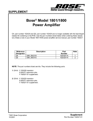 Bose 1801-1800 - Service Manual