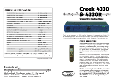 Creek 4330&4330R Operating instructions