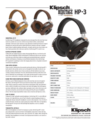 Klipsch HP-3 - Brochure