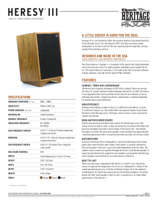 Klipsch Heresy-III - Brochure