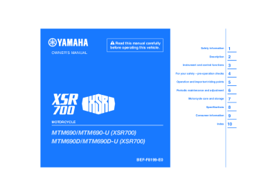 Yamaha XSR700 - Owners manual 2022