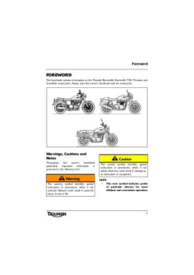 Triumph 865 Bonneville T100 Scrambler Thruxton - Owners manual EN 2007
